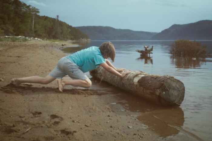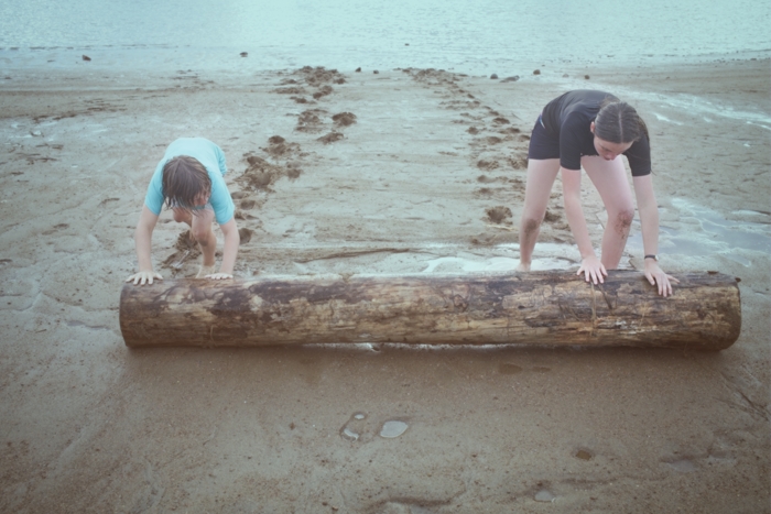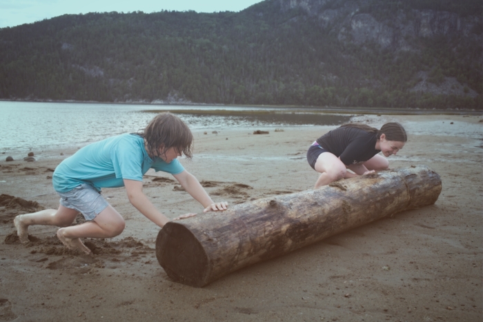Pushing a log on wet sand is not too hard.
