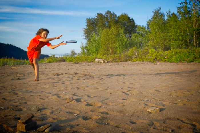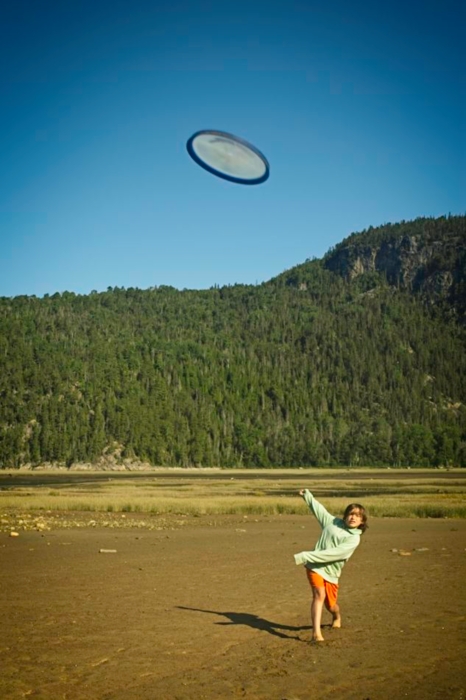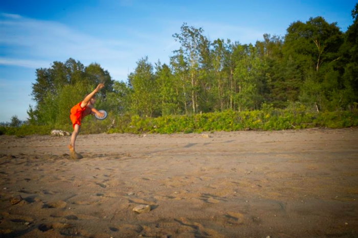 Evening, Martin plays toss the disk.