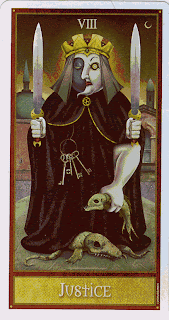 Justice represents justice, fairness, truth and the law. Justice resides within the ancient Egyptian concept of Maβat, which contains the philosophies of truth, balance, order, law, morality and justice. Maβat regulates the stars, seasons, and the actions and interactions of both mortals and the deities in order to prevent the universe from returning to chaos. Equilibrium is dependent upon Maβat. Maβat embraces all aspects of existence.